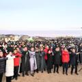 2026년 병오년 첫 날인 1일 울산 중구 병영성에서 열린 새해 해맞이 행사에서 김영길 중구청장과 박경흠 중구의장, 박성민 국회의원, 이성룡 울산시의장, 박문태 중구문화원장, 시구의원, 시민들이 떠오르는 태양을 보며 손을 흔들고 있다.