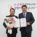 신경호 강원도교육감이 5일 강원도교육청에서 이상호 태백시장으로부터 태백시 교육발전에 기여했음을 인정 받아 태백 명예시민증을 수여받았다.