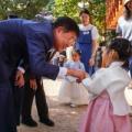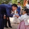 대상은 2026년 1월 1일 이후 종로구에 출생신고를 하고 주민등록을 둔 신생아 가정 건강, 놀이, 안전 등 10종 세트 마련하고 종로구 육아정책 수록한 가이드북과 함께 배송 정문헌 종로구청장이 한복을 입은 아이와 마주보고 악수하고 있는 사진이다. 정문헌 구청장은 안경을 쓰고 남색 정장을 입고 있으며...