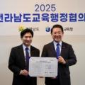 김대중 전라남도교육감(왼쪽)과 김영록 전남도지사가 5일 ‘2025 전라남도교육행정협의회 합의문’을 들고 기념사진 촬영하고 있다. (제공=전남교육청)전남도교육청과 전남도가 전남 미래 경쟁력 강화를 위해 실질적 협력 확대에 나섰다. 두 기관은 정례적 협의를 넘어 정책 실행 중심의 동반자적 체계를...