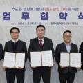 이범석 충북 청주시장(사진 가운데)이 5일 임시청사 직지실에서 민간 소각업체 4곳과 수도권 생활폐기물 청주 반입 자제를 위한 업무협약을 맺고 기념 촬영을 하고...