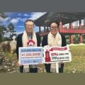 최상기 강원 인제군수(오른쪽)가 25일 군청 집무실에서 유계식 강원사회복지공동모금회장에게 불우이웃돕기 성금을 기탁받고 기념사진 촬영을 하고 있다. 이날 기탁 규모는 4160만원으로 전년 1410만원 대비 늘면서 지원 대상 가구도 141가구에서 208가구로 증가했다. [사진=인제군]