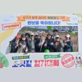 김이강 광주광역시 서구청장(사진 앞줄 가운데)이 24일 서구청 들불홀에서 열린 ‘마을공동체 공모사업 설명회’에 참석해 마을공동체에 관심 있는 지역 주민 등과 '착한도시 서구' 문자 패널을 들고 구호를 외치고 있다./ 광주 서구 제공