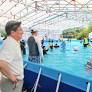 정용래 유성구청장이 지난 26일 개장한 연구단지종합운동장 어린이 물놀이장에서 놀고 있는 아이들을 보고 있다. 유성구 제공. 대전 유성구가 도심 속 여름 피서지로...
