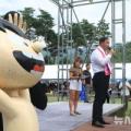 2일 강원 평창군 대표 여름축제인 '더위사냥축제' 개막식이 열린 가운데 심재국 군수가 대화면 땀띠공원을 찾은 방문객들에게 인사말을 하고 있다. 2025.08.02. wonder8768@newsis.com