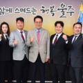 울산 울주청년회의소 및 남울주청년회의소 임원진 일행이 19일 울주군청을 방문해 이순걸 울주군수와 지역 사회 발전 방안에 관해 환담을 나눈 뒤 기념촬영을 하고 있다. 울산 울주군 제공