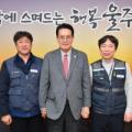 강창호 한국수력원자력노동조합 위원장(오른쪽) 일행이 지난 20일 울산 울주군청을 방문해 이순걸 울주군수와 환담을 나눈 뒤 기념촬영을 했다. 울산 울주군 제공