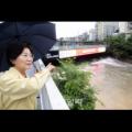 김미경 은평구청장이 17일 불광천 현장 점검을 하고 있다.집중호우로 인한 피해를 최소화하기 위한 이번 현장 방문은 하천의 수위 상승으로 인한 침수와 범람 등을...