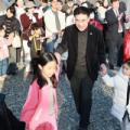 이응우 계룡시장(좌측 두 번째)이 정월대보름 민속장터 행사장에서 시민들과 손을 맞잡고 강강술래를 하며 화합의 원을 그리고 있다. 전통놀이 체험에 직접 참여한 이...