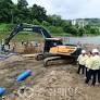 이재영 증평군수가 6일 충북 증평군 사곡리 보강천 송수관로 파손 현장을 찾아 긴급 복구 작업을 살펴보고 있다.오진영 기자 o7799@ccdn.co.kr.