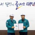 임직원 이동편의 높이는 교통복지 협약 노선 홍보·의견 수렴 통해 이용환경 개선. (사진 왼쪽부터) 장재홍 KT&G 대전공장장과 최충규 대덕구청장이 11일 구청 구민의...