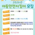 (제공=부산광역시) 부산시 자치경찰위원회(위원장 김철준)는 9일 부산경찰청과 오는 1월 12일~30일까지 '2026년 아동안전지킴이'를 모집한다고 밝혔다. 이... 그러나 성범죄 경력자 등 부적합한 자는 제외되며, 서류심사와 체력검사, 면접을 통해 최종 선발된다. 선발된 지킴이들은 3월부터 12월까지 지정된...