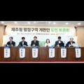 반면 김종현 사회적기업 섬이다 대표는 "여론조사가 법적 구속력은 없다. 제주도도 반영하지 않겠다고 한다"면서도 "도민의 의견을 다양한 방식으로 확인하는 것은 매우 중요하고 필요한 과정이라고 생각한다"며 여론조사를 지지했다. 하지만 이상봉 도의회 의장은 여론조사에 대한 부정적인 의견이 다수...