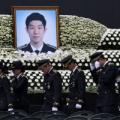 지난 15일 인천 서구 인천해양경찰서에서 엄수된 ‘해양경찰관 고(故) 이재석 경사 영결식’에서 동료 경찰들이 경례하고 있다. (사진=연합뉴스) 린젠 중국 외교부 대변인은 16일 정례 브리핑에서 “최근 한국의 이재석 해경이 중국 공민을 구하다 순직했다”면서 “삼가 안타까운 사망을 애도하고 그의 가족에...