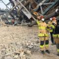 지난 7일 오후 울산 남구 동서발전 울산화력발전소 보일러 타워 붕괴현장에서 소방대원이 매몰자 수색 및 구조작업을 벌이고 있다. 울산=뉴스1 중앙사고수습본부(중수본)는 붕괴한 5호기 인근의 4, 6호기가 추가로 무너질 위험이 제기돼 해체를 결정했다고 8일 밝혔다. 해당 타워는 이미 해체를 위한 취약화...