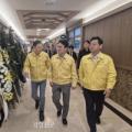한눈에 보는 오늘 : 사회 - 뉴스 : 김민석 국무총리(가운데)가 8일 울산화력발전소 보일러 타워 붕괴 사고로 사망한 전모씨의 빈소가 차려진 울산 남구 울산병원...