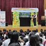 ... △ 16일 경북 의성군 의성초등학교 강당에서 열린 학교폭력 예방 인형극 공연에서 진행자가 곰 인형과 함께 대화를 나누며 학생들에게 존중과 배려의 메시지를...