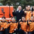 24일 경기도 남양주시 수도권119특수구조대에 무인소방로봇 4대를 기증하는 자리에 정의선 현대차그룹 회장과 성 김 현대차 사장, 이용배 현대로템 사장... 현대차그룹과 소방청은 이 로봇이 소방관의 접근이 어려운 대형 화재나 구조물 붕괴 우려가 있는 화재 현장에서 초동 진압에 활용될 뿐만 아니라...
