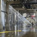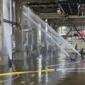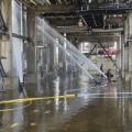 이달 17일 오전 울산시 남구 SK에너지 수소 제조 공정에 불이 나 여러 명이 다친 가운데 소방관들이 불이 난 공정에 물을 뿌려 냉각 작업을 벌이는 모습... 20일 고용노동부에 따르면 지난 17일 10시42분경 울산 남구 소재 SK에너지 울산공장서 폭발 사고가 나 부상 노동자 중 1명이 최근 사망하는 등 5명이 사상했다....