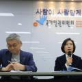 이숙진 인권위 상임위원이 14일 오전 서울 중구 인권위 브리핑실에서 '울산 반구대병원 입원환자 폭행 사망' 관련 기자회견을 하고 있다.