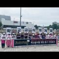 이어 "피고는 광주시 전라남도, 부산시, 경상북도와 대한민국이다. 피고들의 공동 불법 행위로 인해 원고들이 폐암 피해를 입었기 때문에 그에 따른 고통을 배상하라는 취지의 소송"이라고 설명했다. 24일 용산 대통령실 앞에서 진행된 '죽음의 학교 급식실 폐암 산재 문제 해결을 위한 학교급식법 개정 촉구...