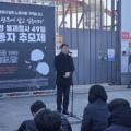 광주대표도서관 붕괴 사고 발생 49일이 지난 28일 광주 서구 치평동 붕괴 현장에서 사망한 작업자의 동생 서정운 씨가 추모발언하고 있다. 2026.1.28/뉴스1