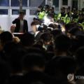 윤석열 정권과 통일교 간 '정교유착 국정농단' 의혹을 받는 한학자 통일교 총재가 23일 새벽 구속되자 경기도 의왕 서울구치소 앞에서 이를 지켜보던 신도들이 슬픔에 잠겨 있다. 2025.9.23