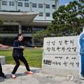 민노총 경남본부 "윤석열 친필 휘호석 철거하고 수사 중단하라"