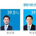 전남 광양시장 가상 양자대결, 박성현 44.1% vs 정인화 43.4% '초박빙'