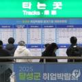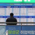 19일 대구 달성군 대구도시철도2호선 대실역에서 열린 '2025 달성군 취업박람회'에서 구직자들이 채용현황판을 보고 있다. 2025.11.19
