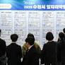 (수원=뉴스1) 김영운 기자 = 28일 경기 수원시 영통구 수원컨벤션센터에서 열린 'AI로 JOB자-2025 수원시 일자리박람회'에서 구직자들이 채용게시판을 보고 있다.