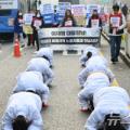 청와대 복귀 첫날, 靑 비정규직 노동자들은 삼보일배…"고용 보장하라"