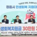 정읍시와 정읍시의회가 전 시민에게 1인당 30만원을 지원한다.이학수 시장과 박일 시의회 의장은 15일 기자회견을 열고, 장기화된 경기 침체로 어려움을 겪는 시민들의...