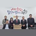 [대전 뉴스밴드 = 박정하 기자]. 조원휘 대전시의회 의장을 비롯한 시의원들이 23일 시의회 기자실에 올해 의정 성과와 새해 계획에 대해 설명하고 있다.