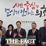 비롯한 시·도의회 의장들이 화이팅을 외치고 있다(사진 왼쪽부터 임채성 세종시의회 의장, 이양섭 의장, 홍성현 충남도의회 의장, 김진경 경기도의회... 대한민국시도의회의장협의회 최호정 회장(서울시의회 의장), 문승우 전북도의회 의장, 조원휘 대전시의회 의장, 정해권 인천시의회 의장). / 충북도의회...