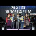 제27회 밀양 시민대상 시상식이 열린 가운데 (왼쪽부터) 허홍 밀양시의회 의장, 조문수 한국카본 대표이사, 손흥상 해심장학재단 이사장, 김은민 극단메들리 대표, 안병구 시장이 기념촬영을 하고 있다. (사진=밀양시 제공) 또한 시군 통합 및 지방자치 30주년 기념 퍼포먼스를 통해 지난 30년간 밀양의 발전 여정을...