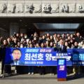 민주당 최선호 양산시의원이 9일 오전 양산시의회 앞에서 지지자들과 함께 양산시장 출마를 선언하고 있다. 김태권 기자 더불어민주당 최...