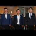 정청래 더불어민주당 당대표 후보자와 김진경 경기도의장, 최충현 도의원이 2일 오전 수원시 영통구 경기도의회 중회의장에 들어서고 있다.