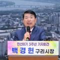 백경현 경기 구리시장이 2일 구리시 여성행복센터 대강당에서 민선8기 3주년 기자회견을 열고, 그간의 시정 운영 성과와 향후 남은 1년 동안 비전 및 정책... 특히 가장 큰 성과로 구리 토평 2택지지구 개발(88만평)을 비롯해, 대상포진 예방백신 무료 접종 등의 의료복지, 국자유공자 처우 개선 및 노인 일자리...