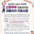 구리시(시장 백경현)는 지역 내 무주택 신혼부부를 대상으로 2025년 무주택 신혼부부 전월세 자금 대출이자... 생계·의료·주거 급여 수급자, 기타 유사 사업 수혜자 등은 지원 대상에서 제외된다. 신청을 원하는 사람은 주소지 동...