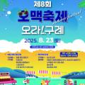 시원하게 즐기자 제8회 오맥축제 오라!구례개최 관련 이미지 포스터 전남 구례군은 오는 8월 23일(토) 구례읍 5일시장 일원에서 여름철 대표 체류형 야간... 구례군과 도시재생현장지원센터는 행사 전·중·후 철저한 안전관리와 전기·의료·우천 대비 대책을 마련해 방문객들이 안심하고 축제를 즐길 수 있도록...