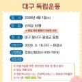 ▲ 찬란한 봄볕에 다시 찾는 대구 독립운동 포스터 대구문화예술진흥원 박물관운영본부 소속 대구근대역사관은 2026 대구시민주간 연계행사로 4월 1일 대구시 달서구와 달성군 일원의 대구 독립운동가와 문화유산을 찾아보는 '찬란한 봄볕에 다시 찾는 대구 독립운동' 답사를 개최하며 참가자를 모집한다....