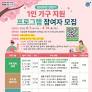 ◆ 부산 기장군, 2026 상반기 1인 가구 지원 프로그램 참여자 모집 건강·취미·힐링 프로그램 운영… 4월 1일부터 신청 접수 부산 기장군(군수 정종복)은 1인 가구의 자기돌봄 능력 향상과 사회적 관계망 형성을 위해 상반기 1인 가구 지원 프로그램의 참여자를 모집한다고 26일 밝혔다. 군은 ‘1인 가구와 다함께...