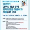 경기 여주시는 지난 29일부터 오는 10월 31일(금)까지 '2025년 청년 주택 임차보증금 대출이자 지원사업' 신청자를 모집한다고 밝혔다. 지원 자격은 공고일 기준 ...