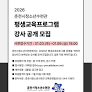 춘천시청소년수련관이 오는 9일 오후 6시까지 '2026년 평생교육프로그램' 강사를 공개 모집한다.수련관은 새해를 맞아 평생교육 프로그램을 문화예술·체육·교육 분야.