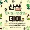 ▲ 삼산데이 행사 포스터 경상북도문화관광공사(이하 공사)는 경북 북부권 산림관광 활성화를 위해 '산삼(산나물+삼겹살)데이' 행사를 오는 11월 1일과 29일... 농가와 소상공인에게도 실질적인 도움이 될 것으로 기대한다"며, "앞으로도 지역 자원을 활용한 체험형 관광콘텐츠를 지속 발굴해 경북 관광의 경쟁력을...