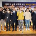 ... △ 박강수 구청장과 관계자들이 '찾아가는 특별신용보증 현장접수처' 운영을 기념해 기념촬영을 하고 있다. (사진=마포구청 제공).