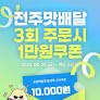 '전주 맛배달' 2만원 이상 3회 주문시 1만원 쿠폰 자동지급
