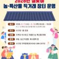 대전 서구 설맞이 농특산물 직거래 장터 홍보물. 사진=서구 제공 대전 서구는 이달 11일부터 12일까지 이틀간 구청 1층 로비에서 설맞이 농특산물 직거래 판매장을 운영한다고 9일 밝혔다. 이번 행사에는 △관내 자영농 △마을 기업 △자매결연 및 업무협약 지자체 등 21개 농가가 참여한다. 배, 사과, 한과를...