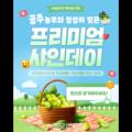 충남 공주시 샤인머스캣 재배 농가들이 20~21일 금강신관공원 내 바로마켓 백제금강점에서 '프리미엄 샤인데이' 행사를 개최한다. 올해 처음 열리는 이번... 가족 단위 방문객을 위한 ▲체험 행사 ▲공연 ▲먹거리 장터 ▲지역 농·특산물 판매 등 다채로운 즐길 거리를 준비했다. ▲샤인머스캣 판매 ▲5상자 구매...